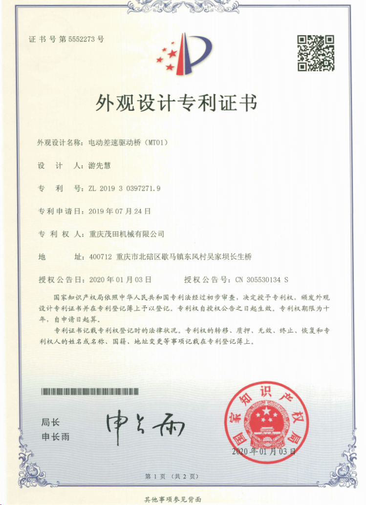 重慶茂田機(jī)械有限公司是國家級小巨人企業(yè)、國家高新技術(shù)企業(yè)、重慶市專精特新企業(yè)、重慶市知識產(chǎn)權(quán)優(yōu)勢企業(yè),致力于現(xiàn)代化山地農(nóng)業(yè)機(jī)械、各類非標(biāo)減速電機(jī)及其控制系統(tǒng)的研發(fā)、生產(chǎn)、銷售。擁有重慶市市級研發(fā)平臺1個 目前研發(fā)、生產(chǎn)、銷售產(chǎn)品廣泛應(yīng)用于農(nóng)業(yè)機(jī)械、醫(yī)療康復(fù)設(shè)備、交通代步工具、智能搬運(yùn)設(shè)備、以及機(jī)器人動力系統(tǒng)等領(lǐng)域。我們的產(chǎn)品具有完整的自主知識產(chǎn)權(quán),擁有多項專利技術(shù)及“重慶